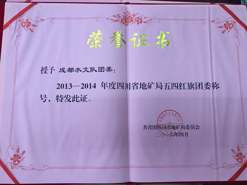 5月3日,局團(tuán)委2016年度工作會議在溫江召開,會上表彰了2013年-2014年度各類先進(jìn)集體和先進(jìn)個人。我隊(duì)團(tuán)委榮獲五四紅旗團(tuán)委稱號,巖土工程公司榮獲青年文明號稱號,隊(duì)團(tuán)委書記李彥婷榮獲優(yōu)秀團(tuán)干部稱號,地質(zhì)工程公司袁磊榮獲青年崗位能手稱號,環(huán)境工程中心石鑫榮獲優(yōu)秀共青團(tuán)員稱號。