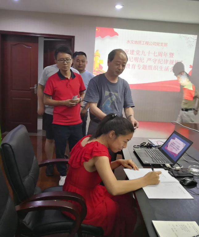 6月29日,我院水文地質工程公司黨支部組織召開紀念建黨九十七周年暨“以案釋紀明紀 嚴守紀律規矩”主題警示教育專題組織生活會,在家黨員及部分入黨積極分子參加了生活會。