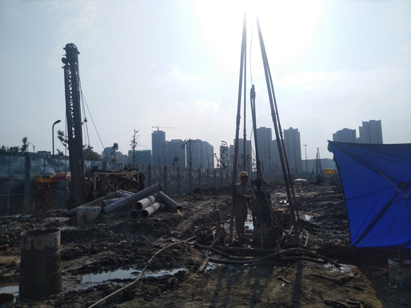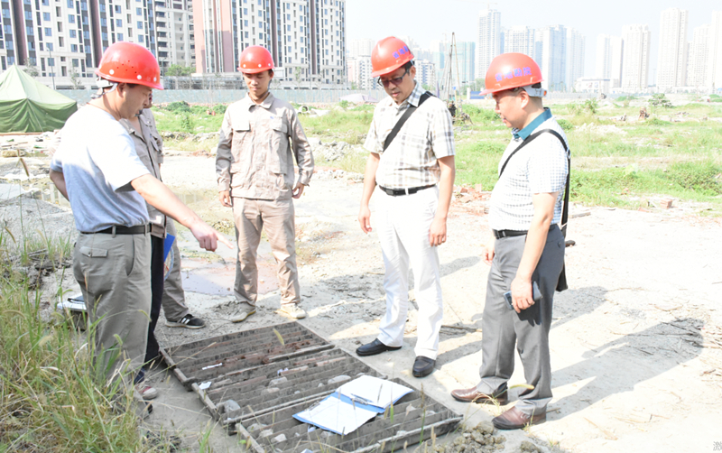 為確保“華府279 項目”巖土勘察的順利完成,及時向建設單位、設計單位、有關(guān)施工單位提供全面的、可靠的、科學的勘察成果,我院水文地質(zhì)工程公司先后選派五名高級工程師和其他現(xiàn)場管理、地質(zhì)技術(shù)人員組成項目組駐扎現(xiàn)場,克服工期緊、高溫暴雨以及鉆機荒等各種因素的影響,加班加點趕進度;院長安世澤、院黨委書記謝大軍以及水文地質(zhì)工程公司領導、技術(shù)顧問、生產(chǎn)管理部門人員等先后前往項目一線慰問作業(yè)人員并進行指導,全力協(xié)助項目部解決施工過程中遇到的具體問題。