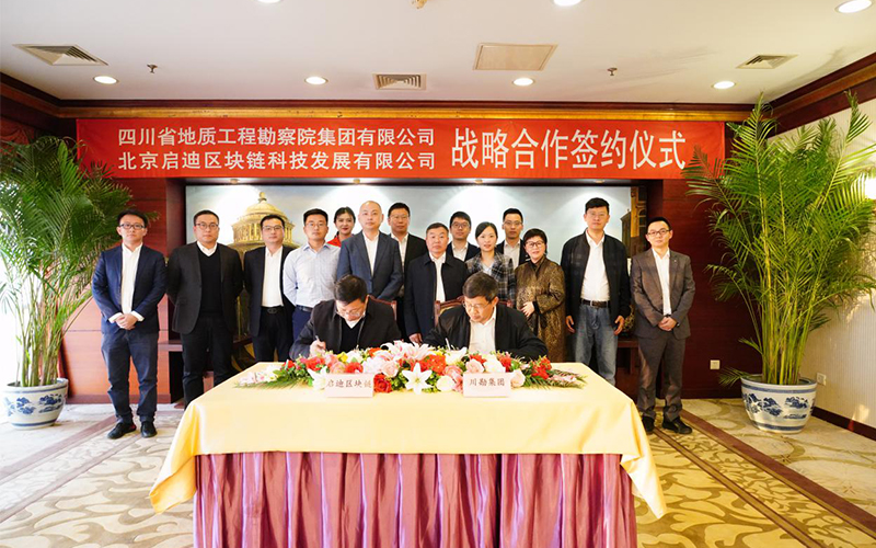 10月16日,四川省地質(zhì)工程勘察院集團有限公司(簡稱“川勘集團”)與北京啟迪區(qū)塊鏈科技發(fā)展有限公司(簡稱“啟迪區(qū)塊鏈集團”)在京簽署戰(zhàn)略合作協(xié)議,雙方將在生態(tài)保護、災(zāi)害監(jiān)測、智慧應(yīng)急等方面展開深度合作。啟迪控股高級副總裁、啟迪數(shù)字集團董事長、啟迪區(qū)塊鏈集團董事長王鼎,川勘集團董事長、總經(jīng)理安世澤代表雙方簽署協(xié)議。